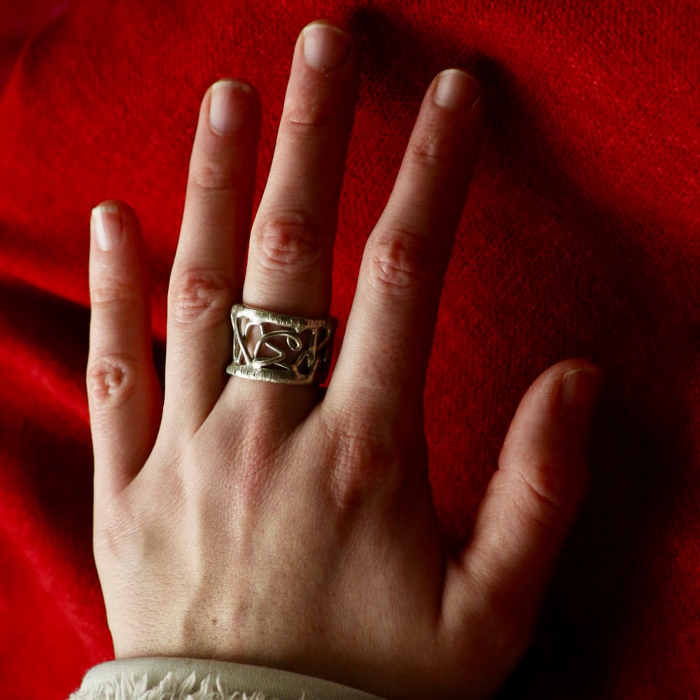 A one off wiggles ring, hand carved piece, cast in sterling recycled 925 silver and hallmarked inside.