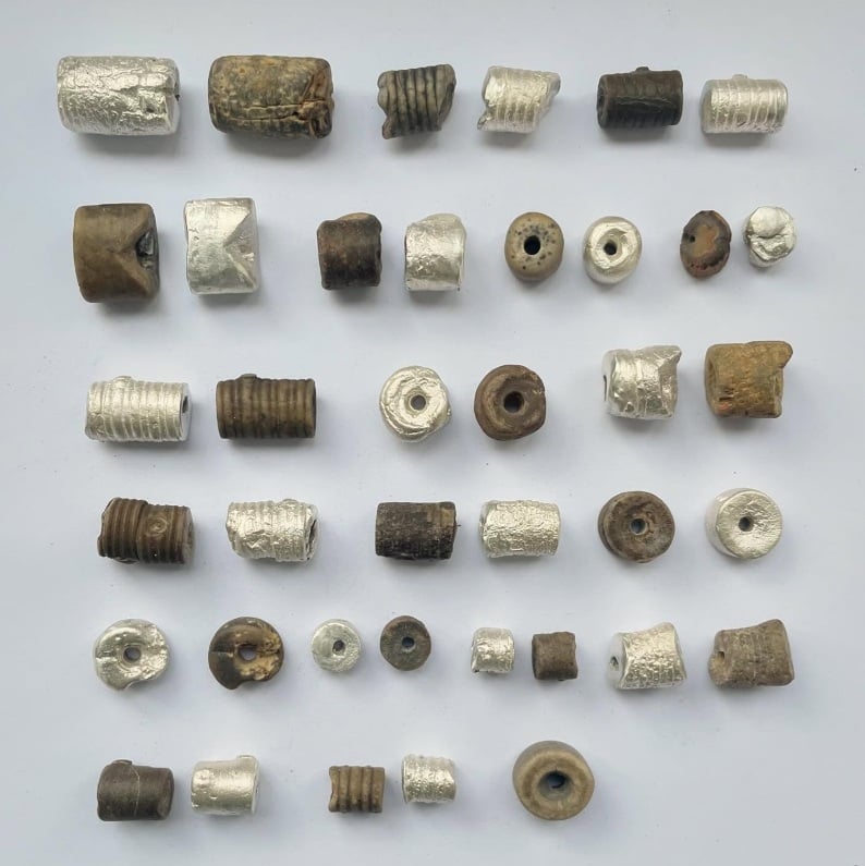 Crinoid fossil cast charms in silver